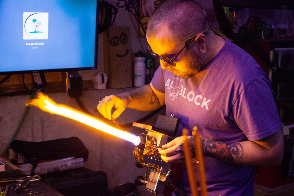 I am an artist obsessed with the fusion of technology and flame. Through 2MUCH Glass, I craft dark futuristic artifacts that feel as if they were smuggled out of a cyberpunk dystopia. My Ghost Circuit // Spectre Series transforms glass into living circuitry — fragments of machines that never existed but should have. Each piece is engineered as a one-of-one relic, carrying the precision of my craft and the intrigue of a future not yet written.