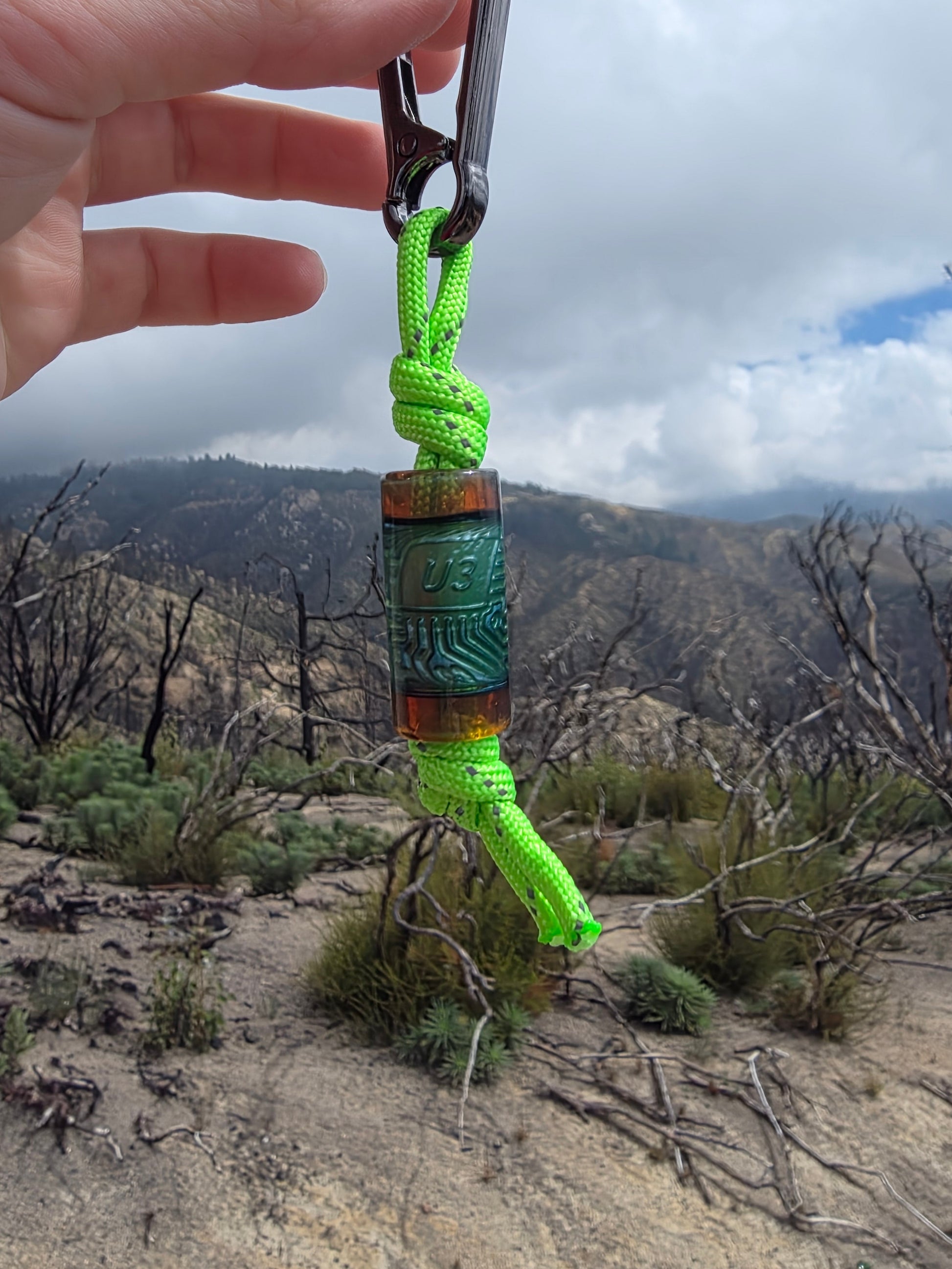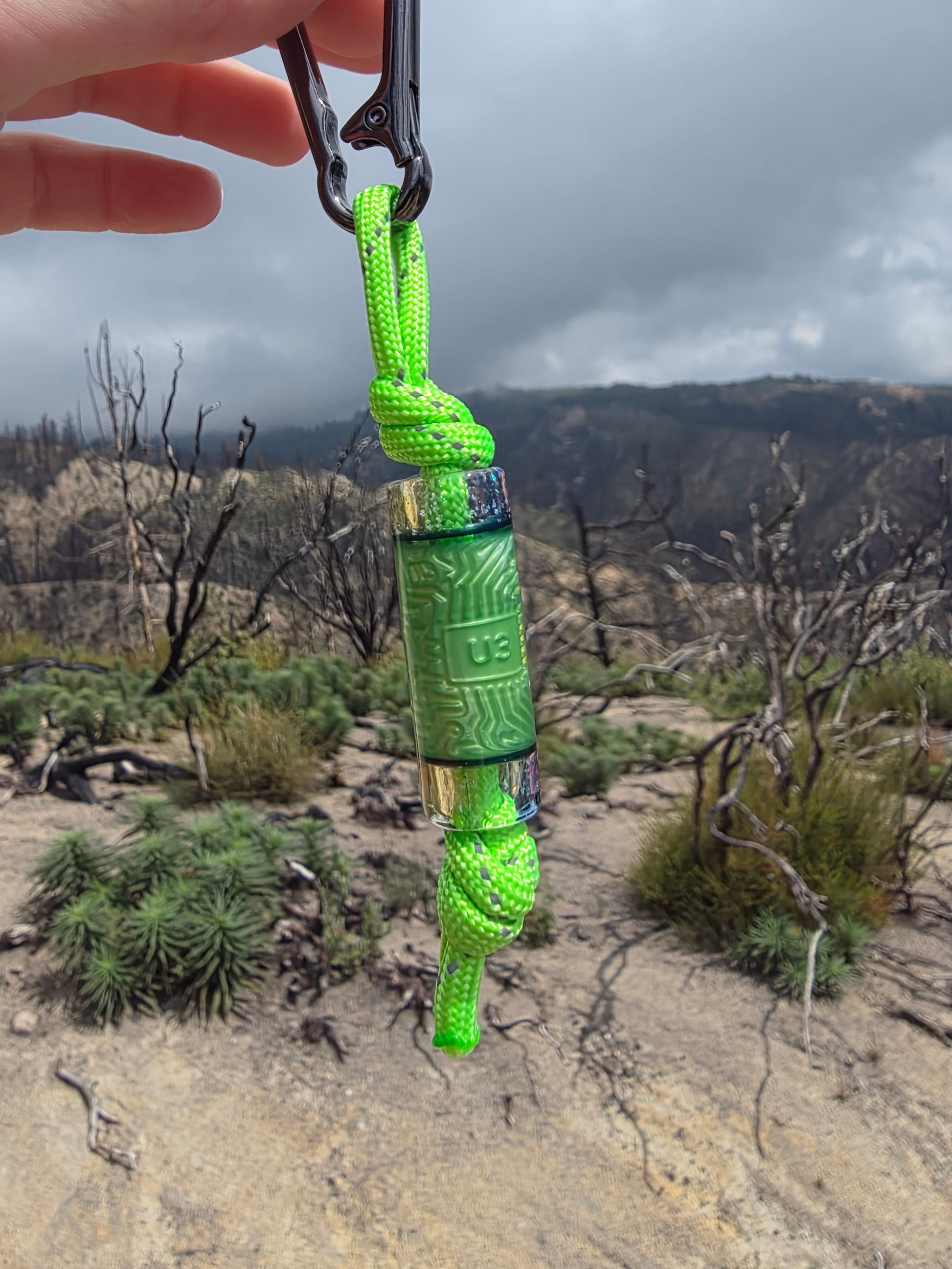 Modular glass data beads strung on high-tension paracord. Worn externally. Processors embedded for constant uplink. Designed for daily carry. Installs to belt loops, bags, or tactical harnesses.